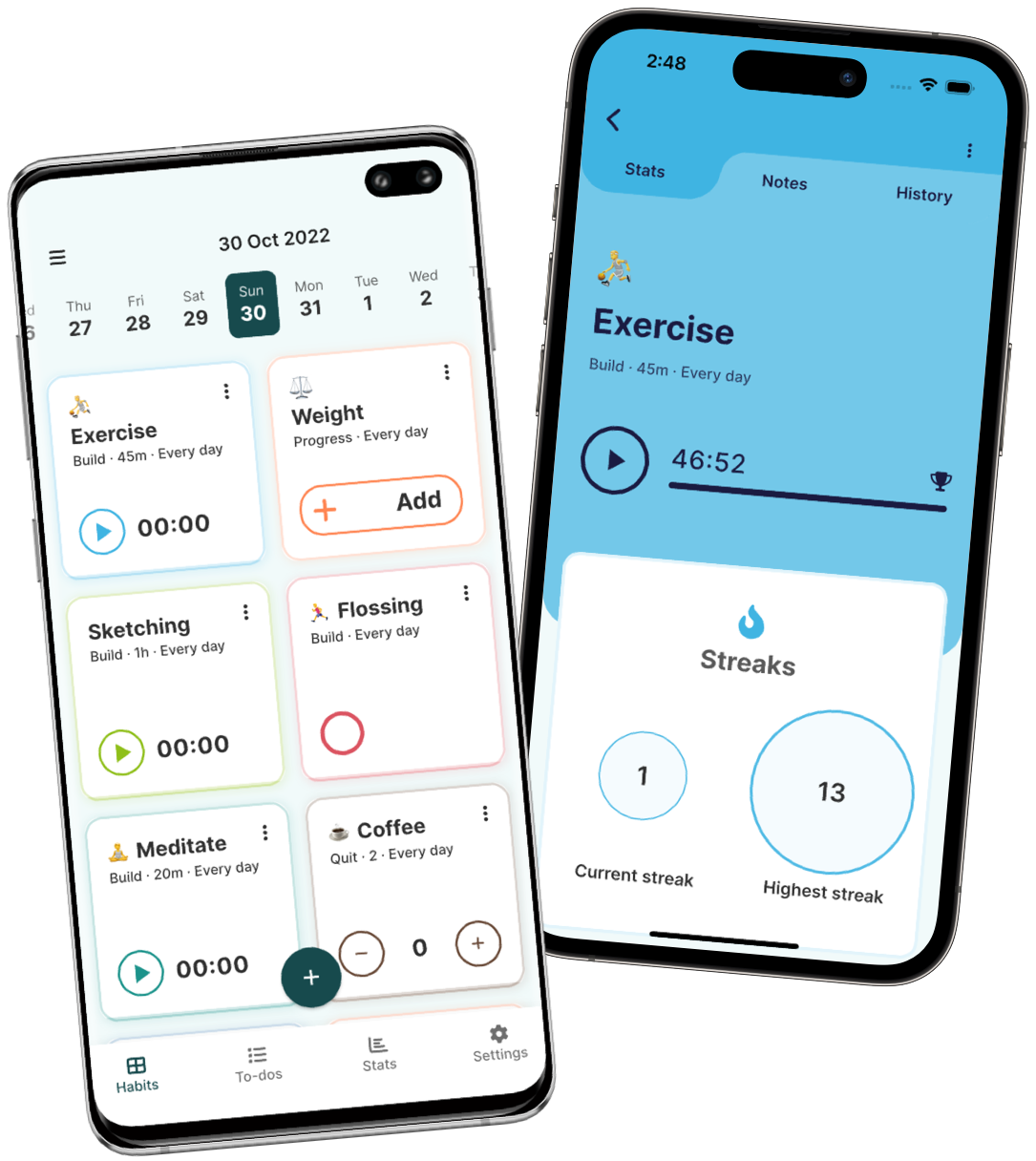 Free and easy to use habit tracker. Track and improve every activity that's important to you. Make those habits stick.